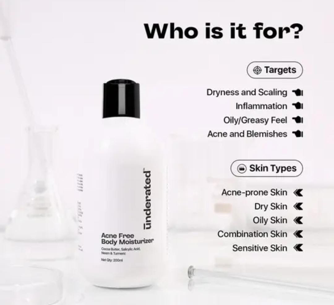 Underrated Acne-Free Body Moisturizer 200g Key Features