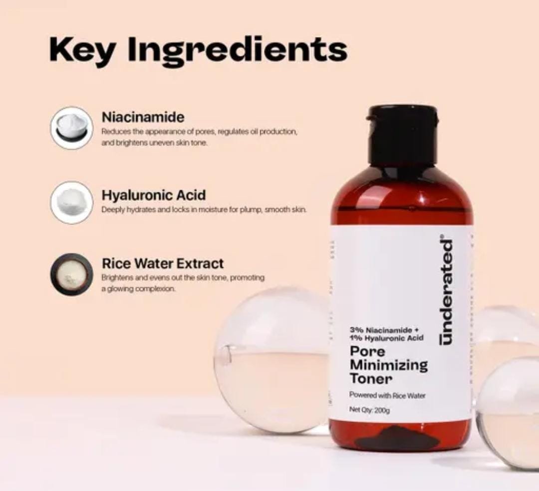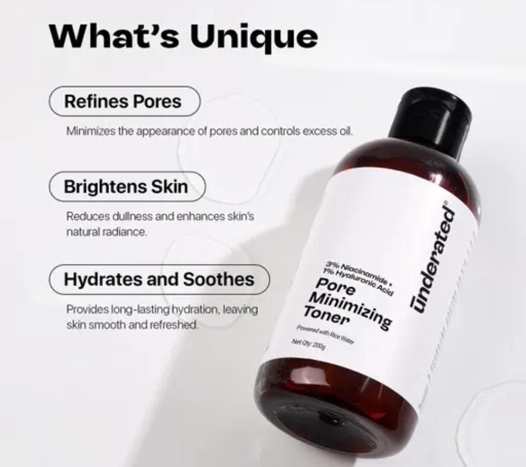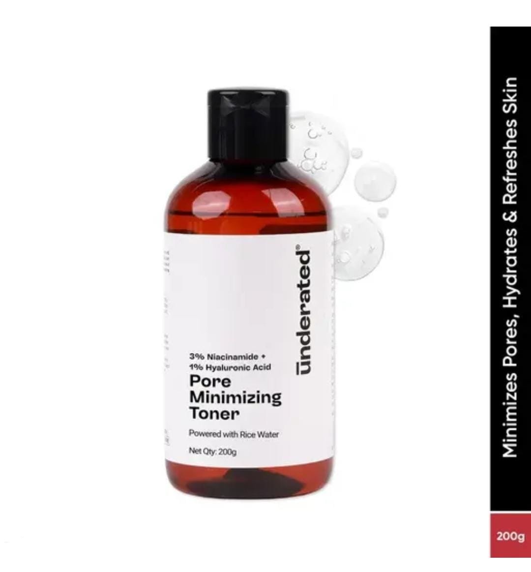 Refresh and refine your skin with the Underrated Niacinamide 3% + Hyaluronic Acid 1% Pore Minimising Toner (200g). This advanced toner combines niacinamide, hyaluronic acid, and rice water extract to deliver hydration, minimize pores, and improve overall skin clarity. Suitable for all skin types, it balances the skin after cleansing and preps it for better absorption of serums and moisturizers.