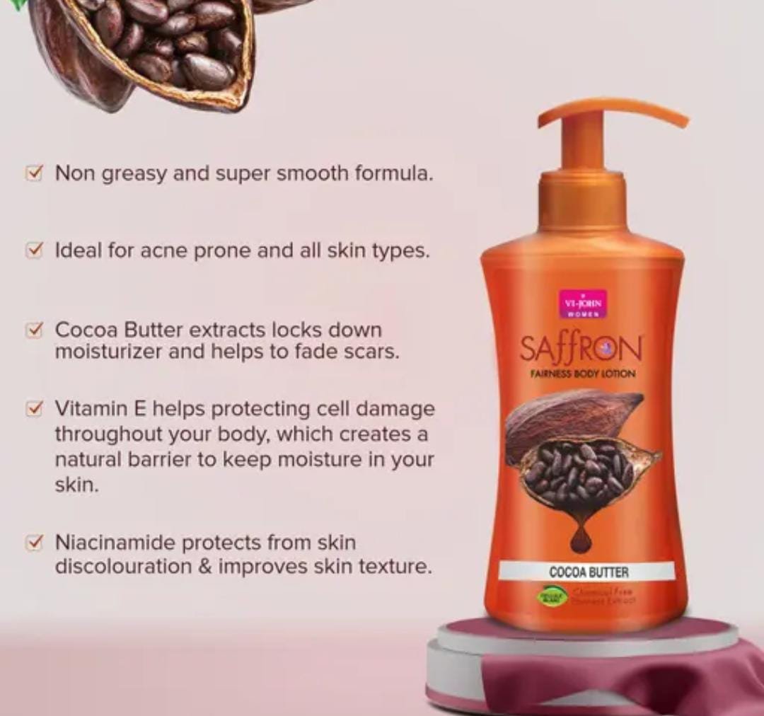 Pamper your skin with the nourishing care of VI-John Cocoa Butter Body Lotion (250ml × Pack of 2). Specially formulated for both men and women, this lotion combines the richness of cocoa butter with moisturizing agents to deliver deep hydration, skin repair, and long-lasting softness. Designed for all skin types, it ensures your skin stays smooth, radiant, and healthy every day.