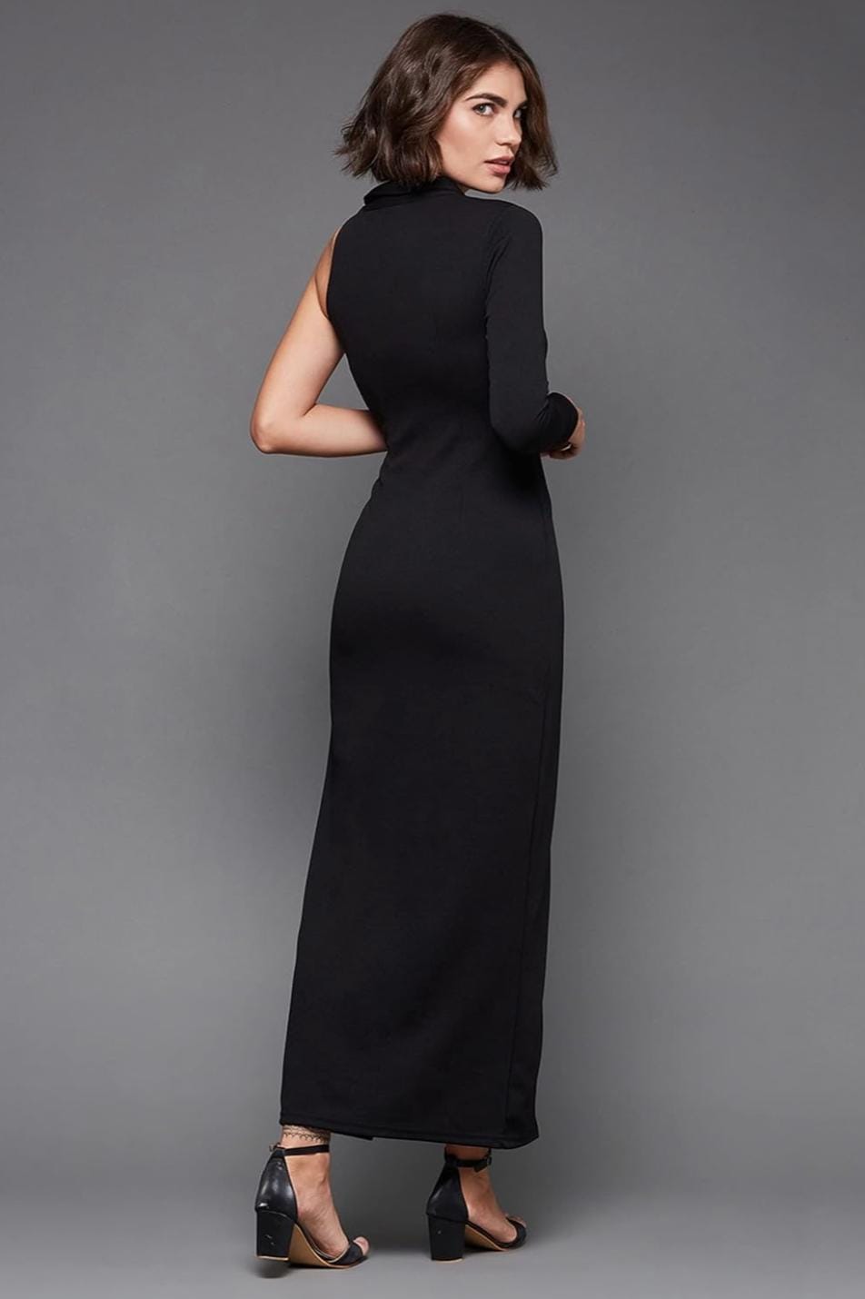 Make a bold fashion statement with this elegant black asymmetric one sleeve maxi dress, designed for women who love modern and sophisticated party wear. Crafted from smooth and comfortable polyester fabric, this dress offers a sleek slim fit silhouette that enhances the natural body shape while providing a stylish and confident look.