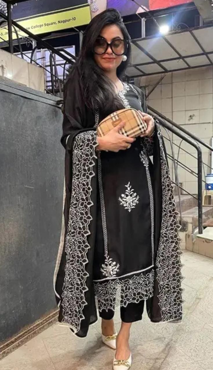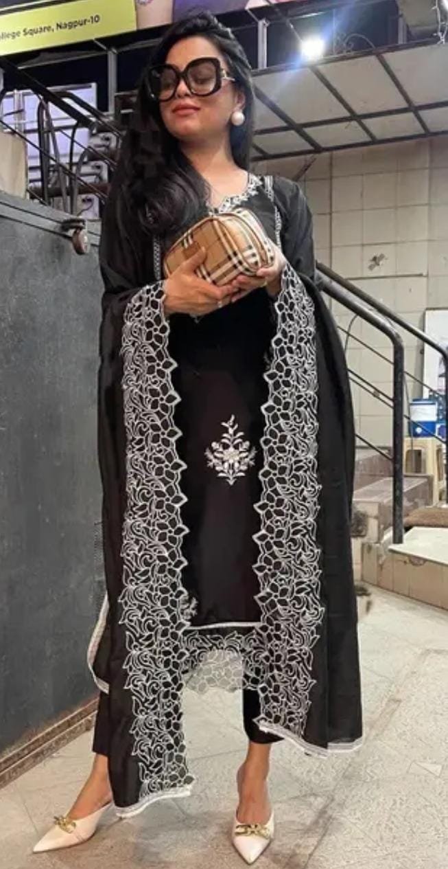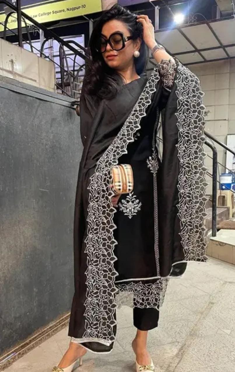 The black color of the kurta set symbolizes sophistication, strength, and timeless appeal. Combined with floral motifs and lace detailing, the outfit exudes charm and confidence. Whether it is a festive celebration, a family function, or a cultural event, this kurta set ensures you look stylish and graceful.