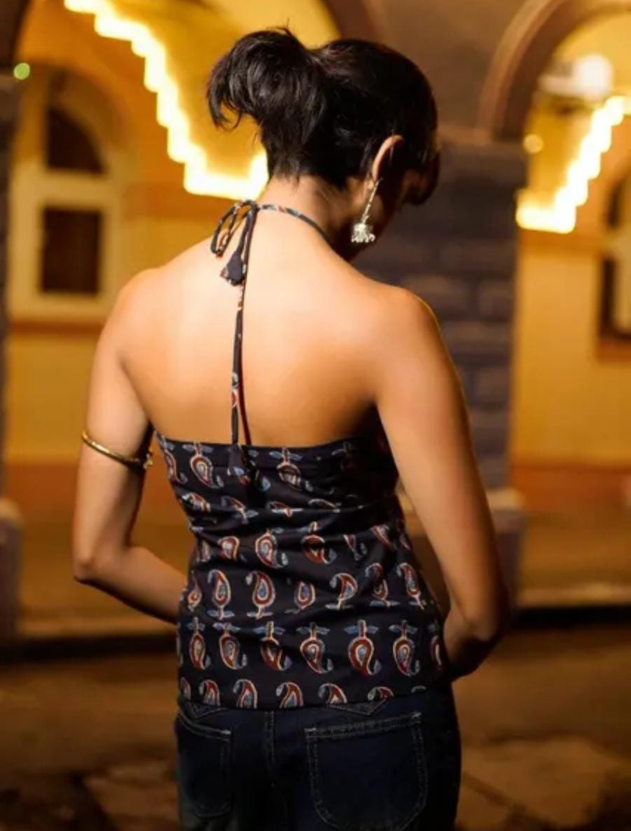 The dark blue color symbolizes elegance, sophistication, and confidence. Combined with the printed design and backless cut, the kurti exudes charm and individuality. Whether it is a festive celebration, a casual day out, or a party, this kurti ensures you stand out.